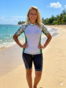 Crafted from high-quality stretchable fabric, this short-sleeve rashguard ensures flexibility and a smooth, comfortable feel against the skin. The lightweight, quick-drying material enhances breathability and reduces moisture retention, making it ideal for extended use in water. Its ergonomic cut allows full range of motion, while durable stitching and fade-resistant fabric maintain shape and color even after repeated exposure to sun and saltwater. Designed for both protection and performance, it provides dependable comfort for active women